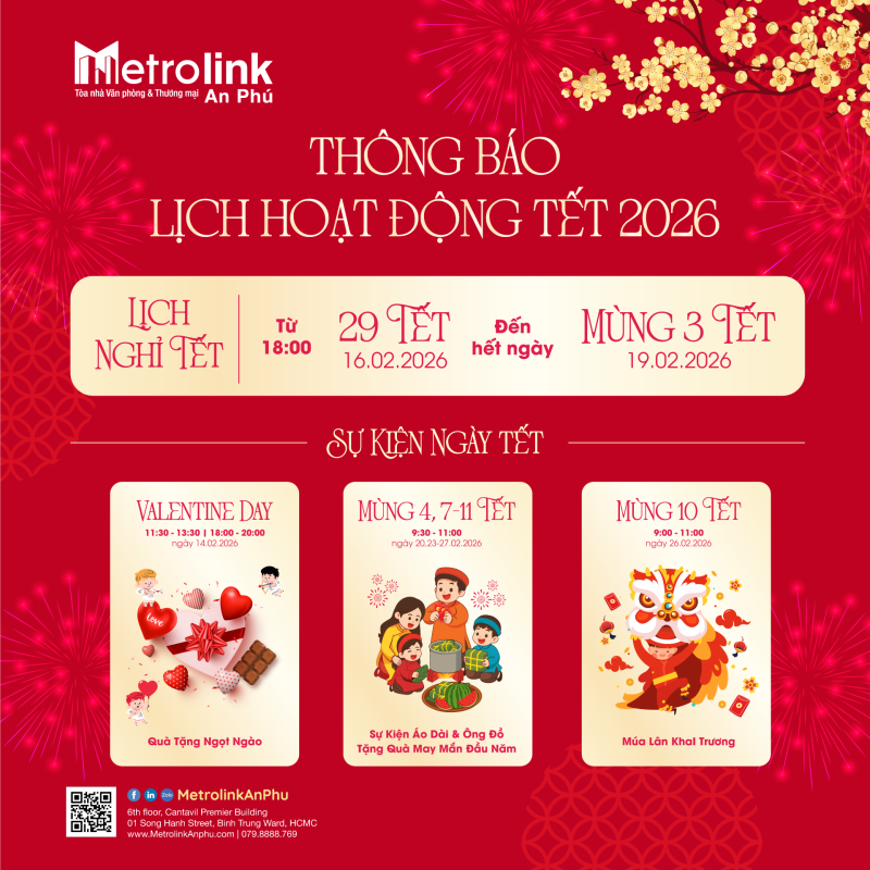 Metrolink An Phú – Tòa nhà Văn phòng & Thương mại trân trọng thông báo lịch hoạt động trong dịp Tết Nguyên Đán 2026 như sau: